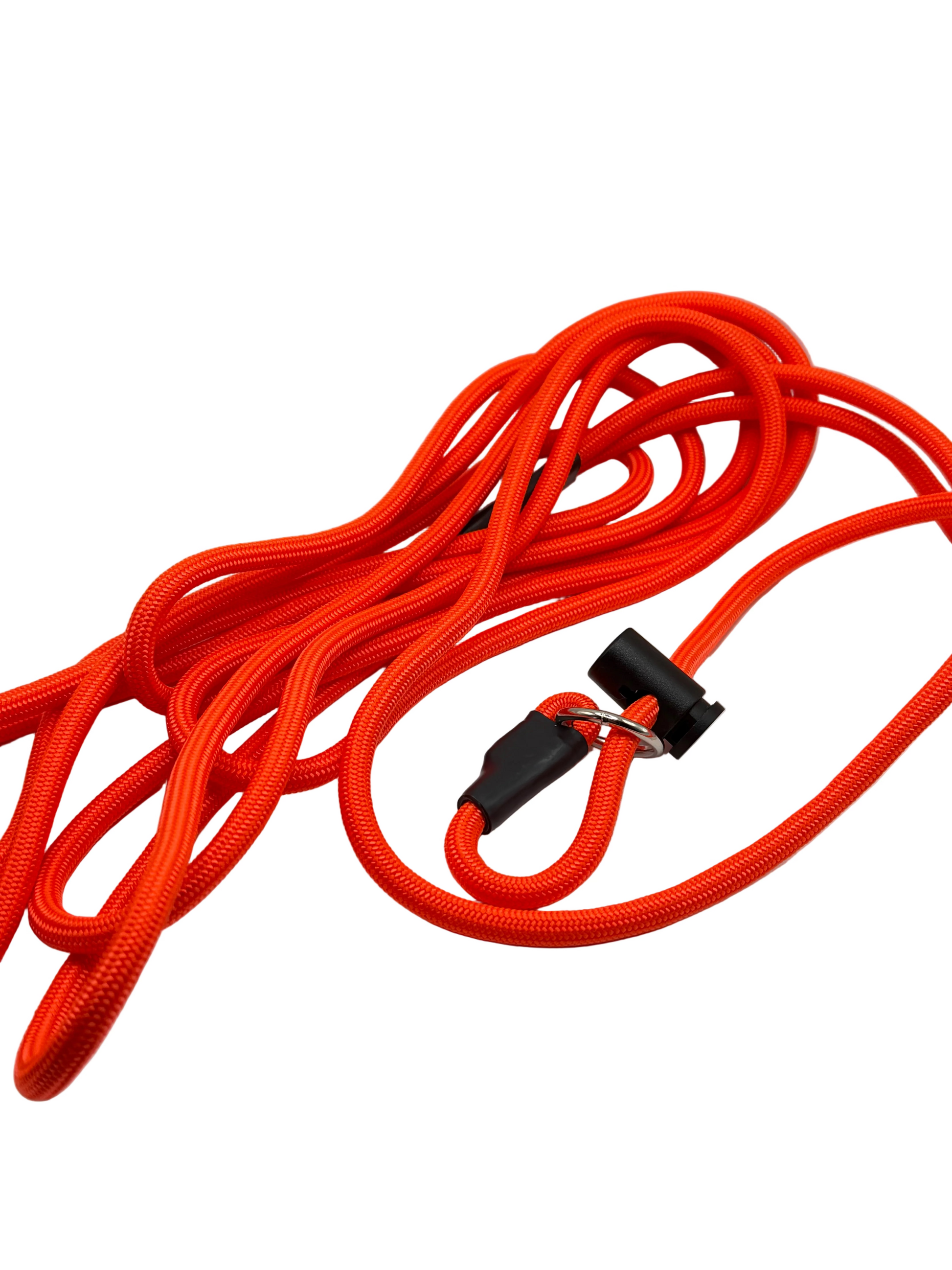 This 6 ft slip leash with a handle is perfect for effective dog training. The leash easily tightens and loosens with the adjustable slop loop to provide quick and gentle control. The comfortable handle gives you a secure grip during training sessions. Made from strong, bright nylon rope, its durable and easy to see. Ideal for obedience training and teaching your dog to walk better on a leash.